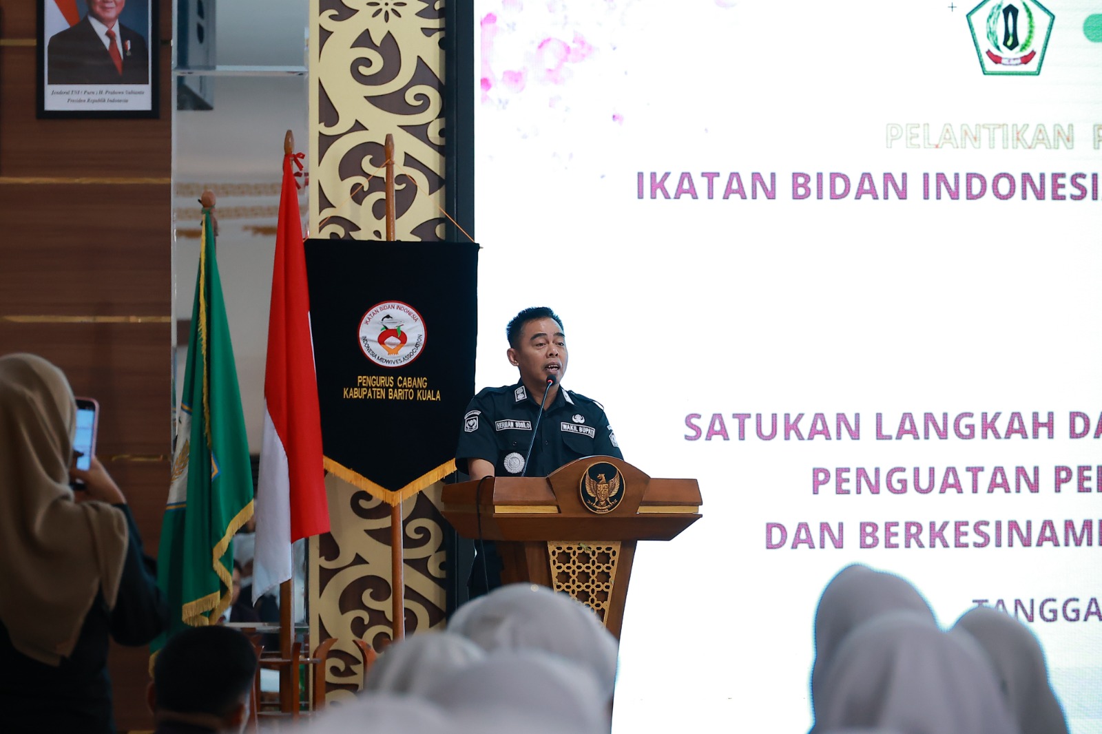 Pelantikan pengurus cabang IBI Kabupaten Barito Kuala dilakukan oleh Pengurus Daerah IBI Provinsi Kalimantan Selatan dan diiringi dengan pembukaan Muscab VII oleh Wakil Bupati Herman Susilo. Dalam sambutannya mewakili Bupati, Herman menyampaikan apresiasi kepada para bidan atas dedikasi dan perannya yang krusial dalam memberikan pertolongan pertama kepada ibu dan bayi.